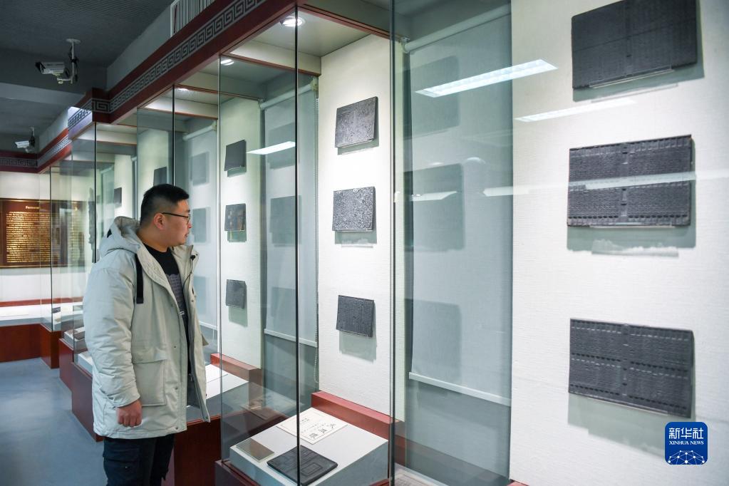 王康在金陵刻經處經版樓內參觀經版(2月21日攝)。