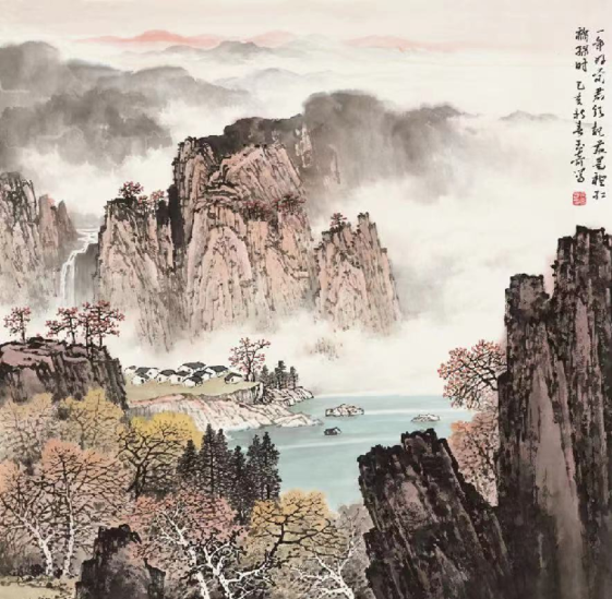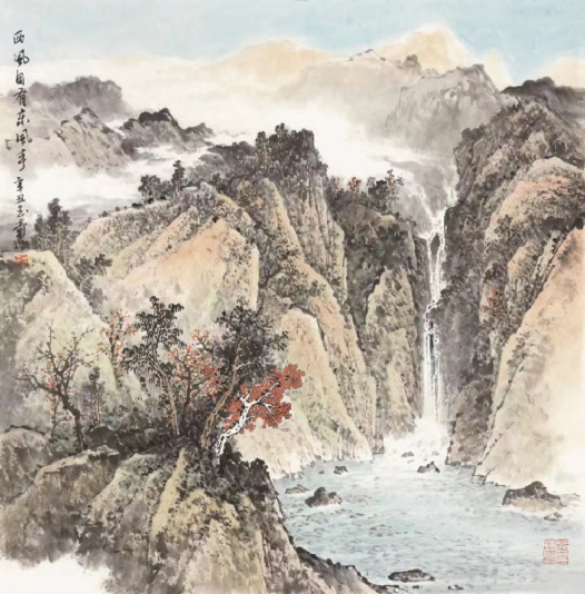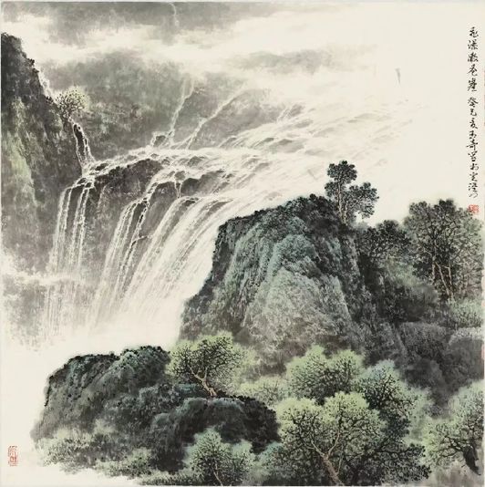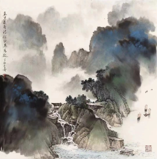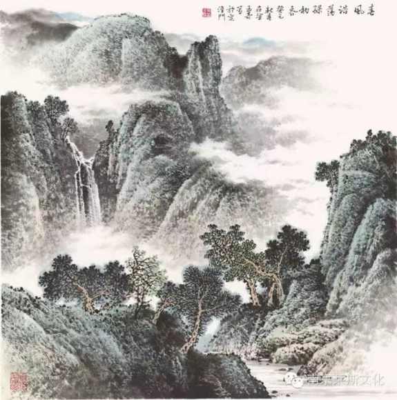 玉奇之真,真為堅守。其實在我看來,人的一生是個自我遇見的過程,本身就是一次長途跋涉的修行,惟有歷苦的堅守,才能覺知幸福的奧秘。這些,從玉奇的畫里,似乎都能洞見。如果說,他筆下的云是活的,我則更喜歡他畫里水的靈動,山的挺拔,真情肆意的流露。這其中,有穿越千年對傳統文化的守望,也有對天地萬物的感通和真情的表達。我遇見的玉奇,生活中也總是真性而為,有時讓人感覺真的可愛,真的有點兒任性,甚至真的不計后果。我想,這便是一個藝術家自然而然對“真”的執著堅守,真性為人的灑脫體現。