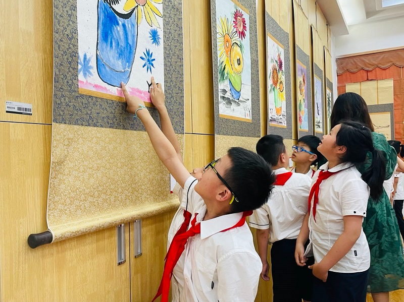 馮健親在致辭時表示,仰世中悟性極高,雖年紀不大,卻筆調老道、風格獨特,兒童的童趣和繪畫的藝術性在其作品中達到了高度的結合?!跋M煺W能夠將仰世中作為優秀案例,創新育人模式,推進素質教育,培養出更多全面發展的學生?!?/p>
