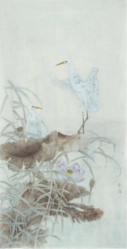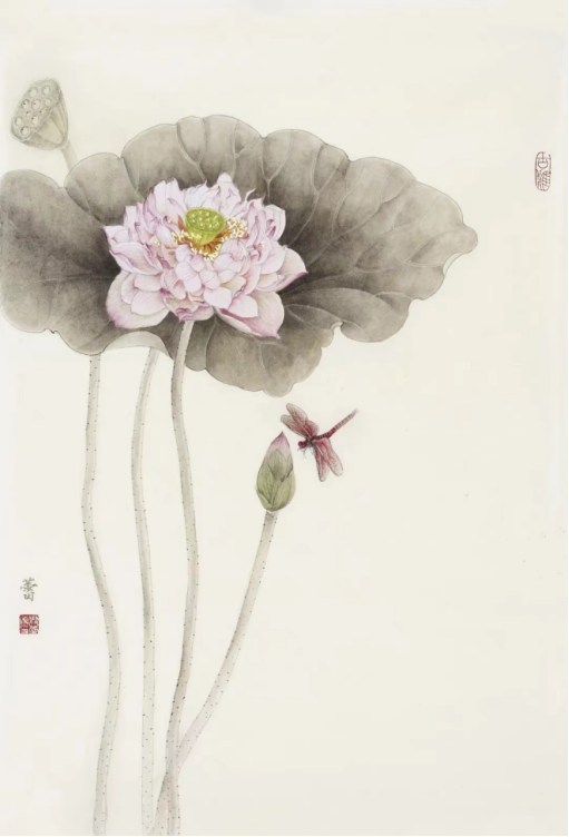 觀堂有云:“一切景語皆情語”,又言:“一枝一語總關情”。樊蕾作畫,嘗構思于妙處,著筆于幽微,直抒胸臆,不加掩飾,乃見心性。愚以為,女史佳作最動人處有三:一則,經營位置,五色相協。悲鴻有言:“古法之佳者守之,垂絕者繼之,不佳者改之,未足者增之,西方畫之可采入者融之?!狈倮L畫工筆,絲毫不見隨意敷衍,而無不于物象工整描摹,融深厚素描技法入中國畫之五色,終于圖式見典范,于氣韻處看清新。其二,形象萬物,氣韻生動。樊蕾女史,善于見微知著,以自然之大我打開心胸。如是,畫面物象,自然生動如在目前,真實可感。其三,造型細膩,感受別裁。作畫每有佳絕處,必見作畫者不同之構思。樊蕾之工筆花鳥,所察獨具只眼,融萬物形態心裁別出,發生動氣韻乃形于言。所以,四時不同,境界各異,無有類同。每見之新作,俱饒有興味。