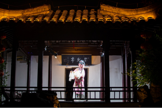 《天上掉下個林妹妹》《牡丹亭》《梁?!贰两綄嵕皯蚯莩?8點30分開啟,聽一段婉轉悠長的昆曲,覓一回越劇紅樓夢中景,光暈下的煙波浩渺,將瞻園的所有景致渲染出柔情。