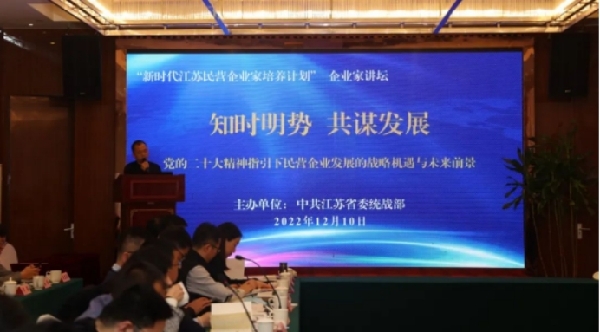 12月8日至10日,2022—2023年度“新時代江蘇民營企業家培養計劃”代表人士班第三次集中培訓在淮安漣水舉辦。培訓期間,組織學員們走進百斯特農業、共創草坪、今世緣酒業等知名企業參觀考察,參加漣水縣交流懇談會,舉辦企業家講壇。省工商聯黨組成員、副主席郭東升出席有關活動。