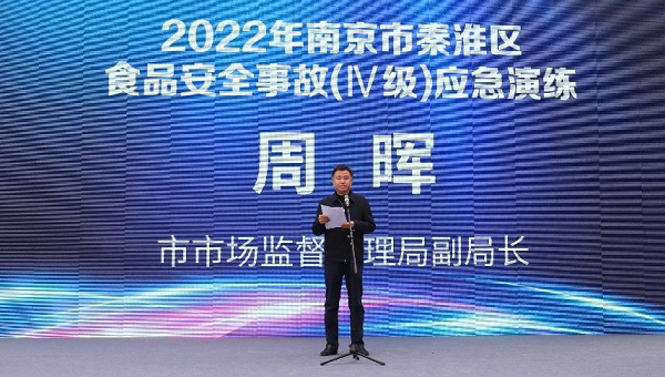 南京市市場監管局副局長周暉,區食安委副主任、區食安辦主任、區政府副區長金超,市市場監管局應急處副處長丁鵬,區食安辦副主任、區市場監管局黨委書記、局長孫紅亮,區市場監管局黨委委員、副局長葉靜等出席演練活動。區食品安全委員會成員單位分管領導、各街道市場監管分局局長、媒體記者等300余人到場觀摩。