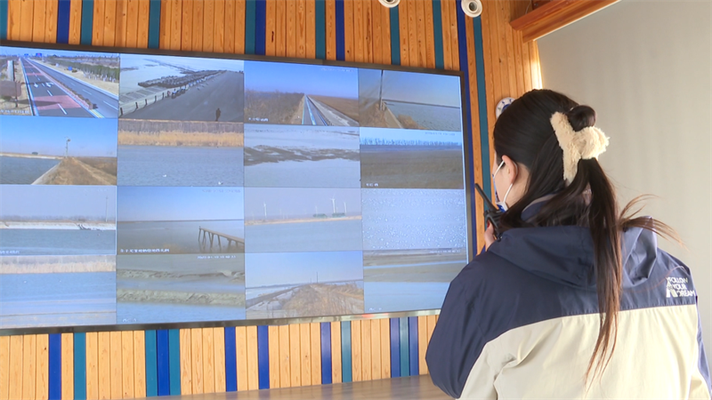 ?????? 今年是“金牌護鳥員”金娟在崗位上過的第四個春節。一到值班室,她就緊盯著監控大屏,監測查看各個高潮位候鳥棲息地的情況,并不時與點位上巡護員溝通交流。