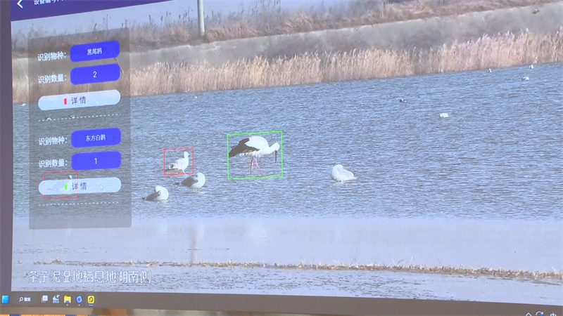 ?????? “現在畫面上可以看到東方白鸛、黑臉琵鷺、白臉琵鷺等,這些都是到條子泥濕地過年的‘貴客’,我們一定會接待好、招待好?!苯鹁挈c擊著控制屏上的識別按鈕,畫面里不同鳥類的旁邊會彈出相應名稱、種群特性等。