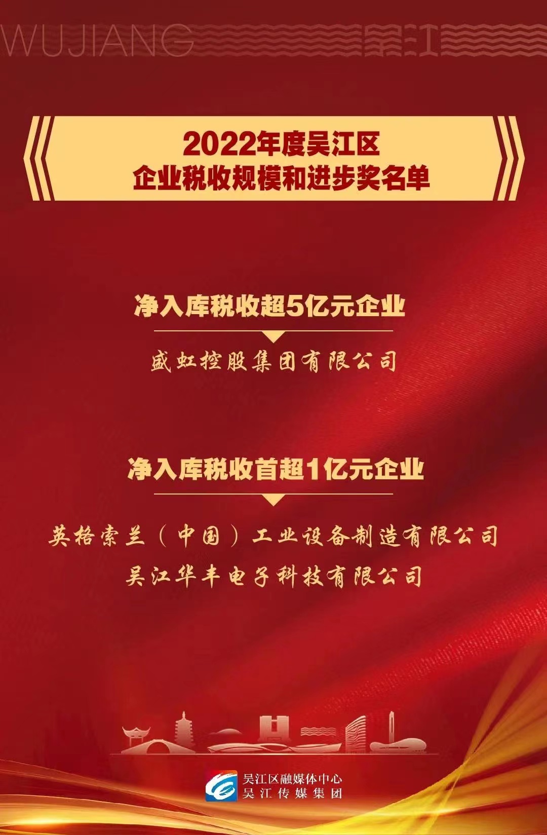 蘇州吳江區表彰企業榜單