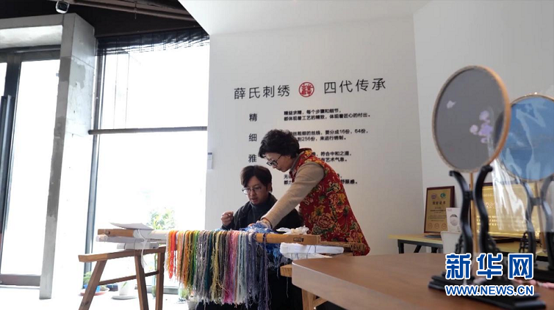 “小的時候不懂,越長大我越能感受到蘇繡是一筆難能可貴的財富,我覺得需要有人回來繼承它、發揚它?!币蛲聪鹘y工藝后繼乏人,大學畢業的張雪放棄了金融行業的工作,回到家鄉鎮湖,頂著家鄉人略顯詫異的目光,毅然拿起銀針,成為一位“繡郎”。