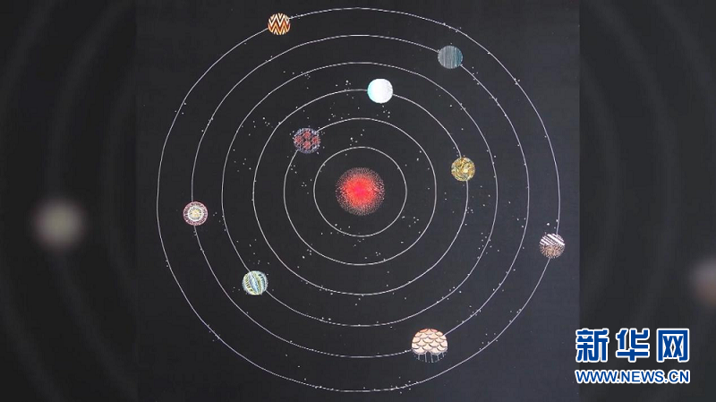 《星空》是對張雪創作影響很大的一幅作品。疏密有度的針法勾勒出一顆顆顏色不一的璀璨星球,這幅既展現蘇繡豐富針法又富有科技感的創新作品曾多次獲獎?!缎强铡芬沧審堁┮庾R到傳統的針法可以和現代的刺繡語言相結合。