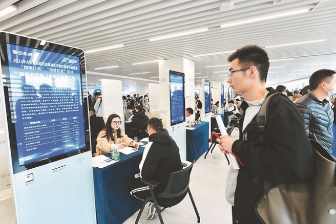 十九日,二〇二三年大中城市聯合招聘高校畢業生春季專場活動在南京江北新區舉辦。范俊彥 攝