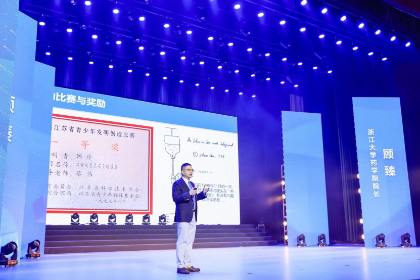 開幕式邀請了浙江大學求是講席教授、藥學院院長顧臻作為往屆優秀參賽選手代表發言,他以自身經歷傳授經驗,勉勵廣大青少年敢于創新、勇往直前,不斷追求科學夢想、探尋科學奧秘。