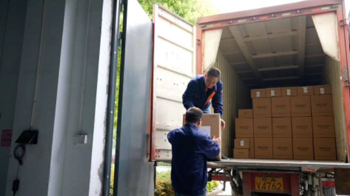 運輸工人正在把打包好的鏡片裝車。新華社記者劉宇軒 攝