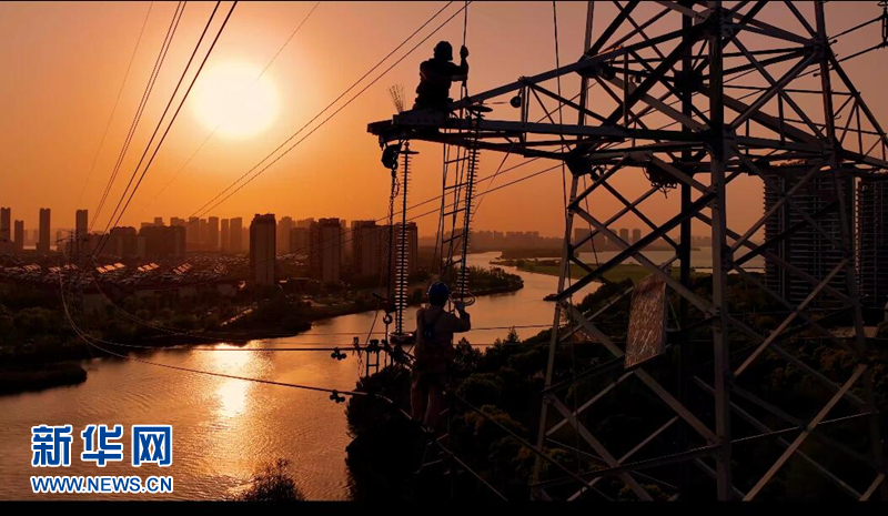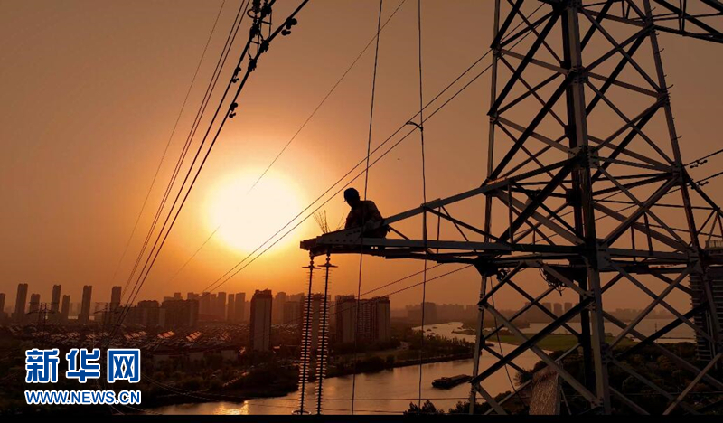 近日,在江蘇蘇州220千伏車寶線檢修現場,電力工人在高空更換輸電線路絕緣子。蘇州河畔,落日余暉映彩霞,高塔上的“繡花匠”們無暇顧及眼前的美景,默默守護身后的萬家燈火! (文靜 報道員:宋昱 楊小明)