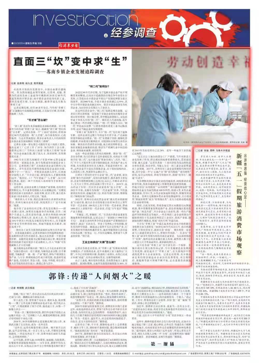 在這些民營企業中,“創二代”接班是現實命題。記者在江陰市新橋鎮一家發軔于鄉鎮企業的知名服裝企業展示館里看到一張巨幅合影,其中既包括創始人,也包括畢業于知名大學的“創二代”。接任法人代表的他,近年來已推動一些經營模式創新?!啊畡撘淮盐沾蠓较?,‘創二代’開始逐步接替?!苯幨欣劢值傈h工委書記陳奕介紹,這是當地企業的發展趨勢。