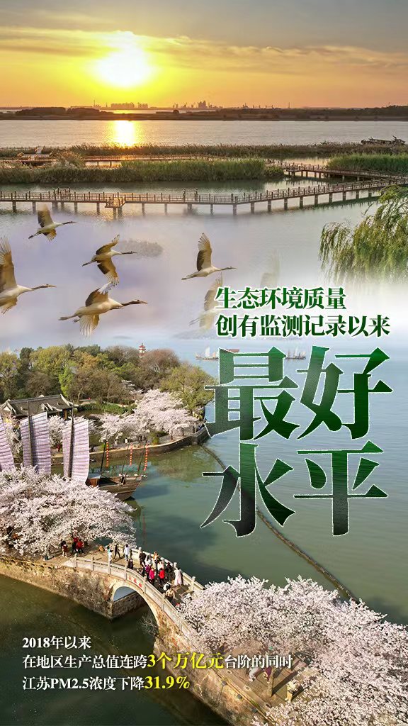 ??? 看得見星空、聞得到花香,綠色是高質量發展的底色、高品質生活的成色。2018年以來,在地區生產總值連跨3個萬億元臺階的同時,江蘇PM2.5濃度下降31.9%,2022年空氣質量優良天數比率達79.0%,生態環境質量創有監測記錄以來最好水平。