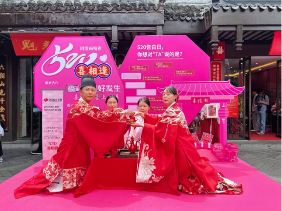 ????在夫子廟大成殿前廣場的現場活動中,主辦方為新人舉行“焚香靜氣、奉匜沃盥、同牢合巹”等傳統婚慶儀式,使得游客駐足觀看,展現傳統婚慶儀式喜慶、華美的風采。除現場活動外,截止6月底前,市福彩中心和區民政局福彩中心將在夫子廟景區婚姻登記點,每周為6對新人送上南京“福彩福運花禮盒”一套,祝新人福運綿綿,愛情長久,與福彩共享美好時光。