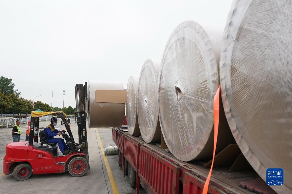 5月24日,在下蜀高新技術產業園內的一家石膏板生產企業,工人在運送原材料。