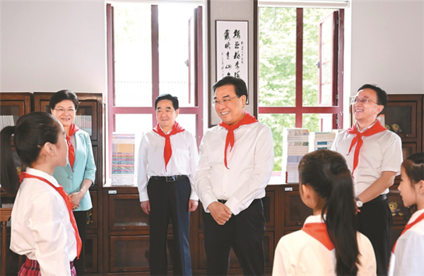 省委書記信長星昨日來到南京師范大學附屬小學,向少年兒童致以節日祝賀,向辛勤工作的廣大教師和少兒工作者致以崇高敬意。吳勝 攝