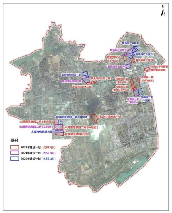 據介紹,此次推進的連片產業用地整合,主要包括黃金灣科創園、太湖灣信息園等兩個園區的超千畝產業用地,以及高浪路以北970畝低效用地的盤活。