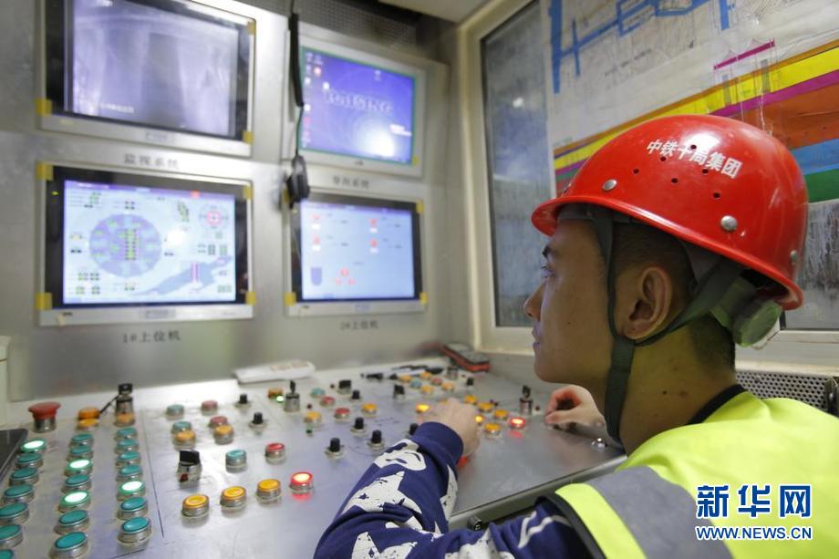 ????6月7日,在江蘇蘇州軌道交通8號線時代廣場站至右岸街站隧道區間,中鐵十局城軌公司施工人員在操控室監視盾構機狀態。