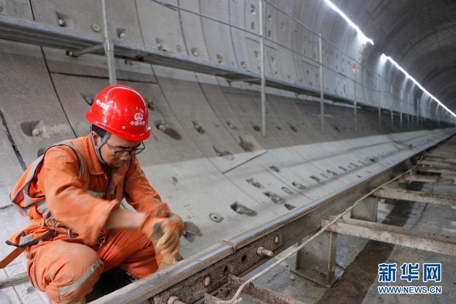 ????6月7日,在中鐵十局城軌公司承建的江蘇蘇州軌道交通8號線時代廣場站至右岸街站隧道區間,施工人員在加固臨時運輸軌道。