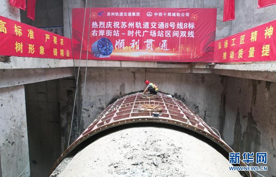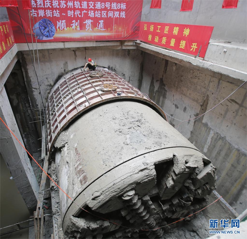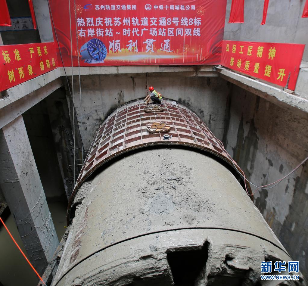 ????6月7日,隨著“圓融3號”盾構機精準到達時代廣場站右線鋼套筒接收處,標志由中鐵十局城軌公司承建的江蘇蘇州軌道交通8號線成功穿越既有橋梁樁基和運營地鐵1號線地連墻,實現了磨樁磨墻盾構區間雙線貫通。