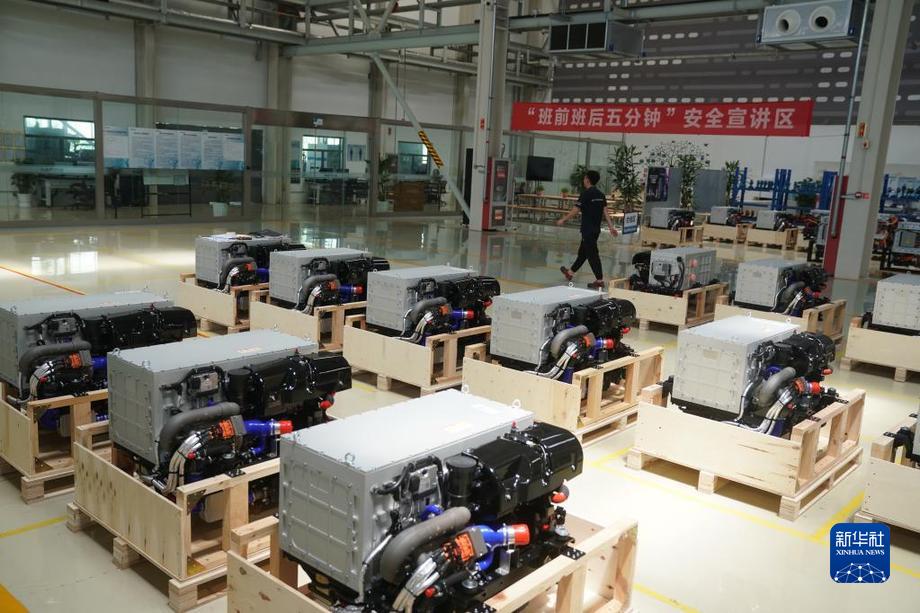 ????江蘇重塑能源科技有限公司車間內待檢測的氫燃料電池系統(6月7日攝)。
