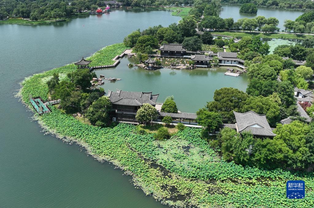 6月9日拍攝的常熟尚湖風景區景色(無人機照片)。