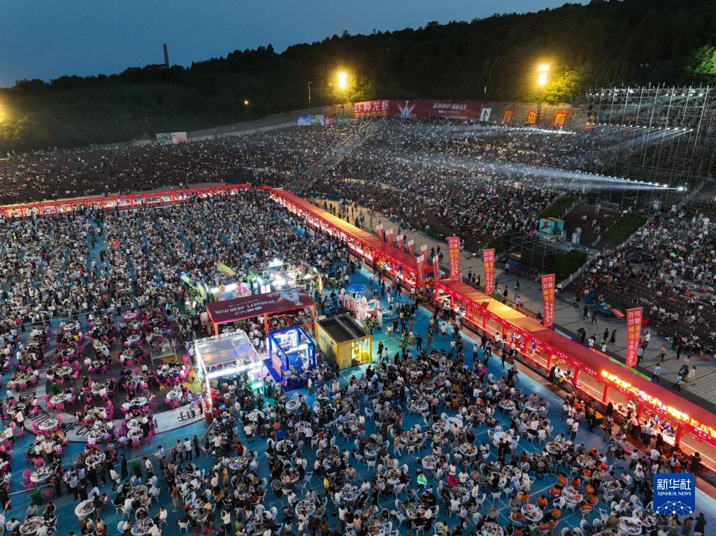市民和游客參加萬人龍蝦宴(6月13日攝,無人機照片)。