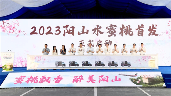 6月13日,2023年陽山水蜜桃首發暨順豐寄遞方案發布儀式在陽山水蜜桃臨時交易市場舉行,正式宣告一年一度的蜜桃季全面開啟。