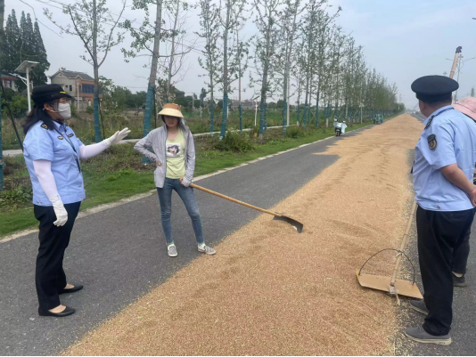 規律巡查有重點。5月下旬以來,揚中市交通運輸綜合執法大隊執法人員在X351雷公島直達通道等路段陸續發現少數村民存在晾曬油菜籽等違法占用道路行為,6月以來,又多次發現部分群眾為圖方便,收完小麥后徑直在道路上打谷曬糧,不僅影響公路正常通行,而且對公路環境造成一定污染。執法人員根據季節性特點,加大巡查頻率,重點路段重點巡查,重要時段及時巡查,確?!耙幝裳膊橛兄攸c”,對占用公路打谷曬場行為做到早發現、早介入、早制止。