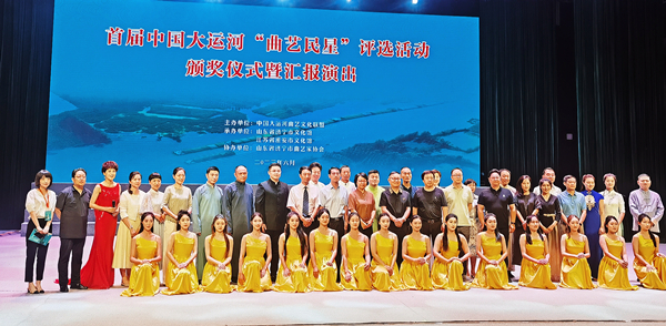 6月14日上午,由中國大運河曲藝文化聯盟、濟寧市文化館、淮安市文化館主辦,江蘇省群文學會曲藝專業委員會、濟寧市曲藝家協會承辦的首屆中國大運河曲藝民星評選活動在山東濟寧文化館藝術劇院圓滿落幕,來自運河沿線各地文化館的曲藝骨干齊聚一堂,為濟寧的父老鄉親呈上了一臺南腔北調,風格各異的優秀曲藝節目,受到了當地觀眾的熱烈歡迎。中國大運河曲藝文化聯盟主席倪明、常務副主席王淮生、副主席張華峰、紀文杰、宋東,副秘書長劉亞婷、劉一航等為獲獎演員頒獎。