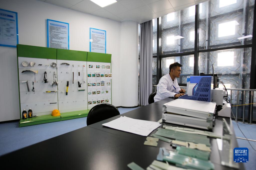 6月13日,工作人員在江蘇射陽港零碳產業園的海上風電復合材料檢測中心收集、分析測試數據。