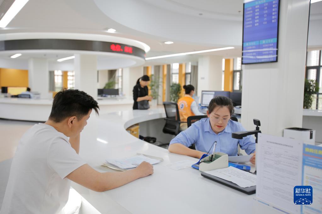 6月13日,在射陽縣市民中心,工作人員為市民辦理業務。