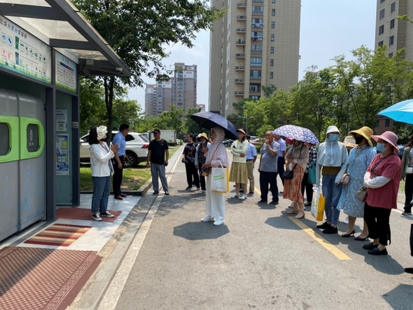 參觀第二站,參觀溧水河濱花園小區,對小區目前的垃圾分類情況和居民參與情況進行了了解,講解員對垃圾分類的基本常識、如何進行垃圾分類等進行了講解和答疑,加深了大家的垃圾分類意識,大家紛紛表示:“垃圾分類無小事,正確分類從我做起?!?/p>
