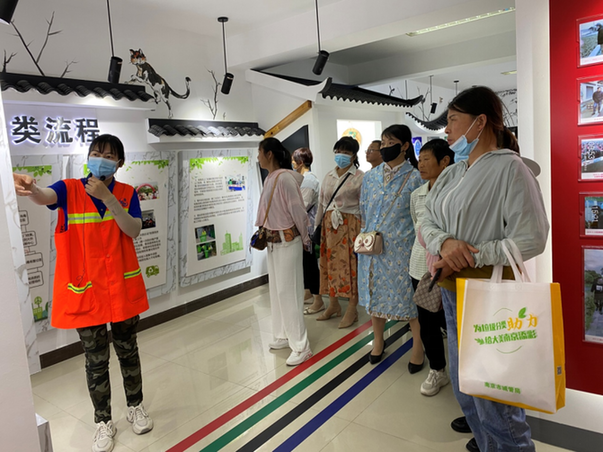 最后,大家來到了石湫垃圾分類體驗館,進入館內,大家直觀地了解到垃圾的危害、垃圾如何分類、分類后的成效等相關知識。也看到利用廢棄物及可回收物再生材料制作的各種手工藝品時,都非常吃驚,原來很多大家認為廢棄的東西可以華麗變身。通過參觀體驗館內的生活垃圾科普教育,向大家發出倡導綠色循環的現代生活方式,讓垃圾分類成為大家新的生活習慣。