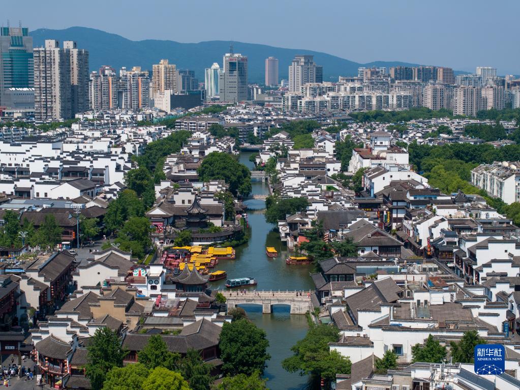 游客在南京夫子廟景區參觀游玩(6月12日攝,無人機照片)。