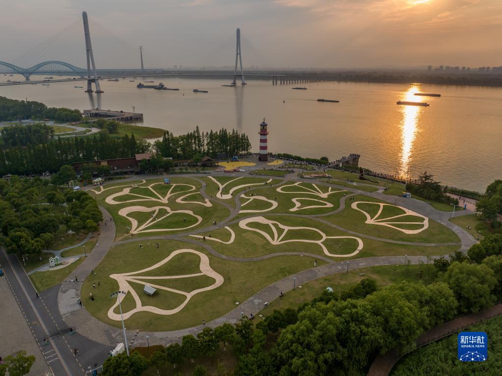 南京魚嘴濕地公園(6月13日攝,無人機照片)。