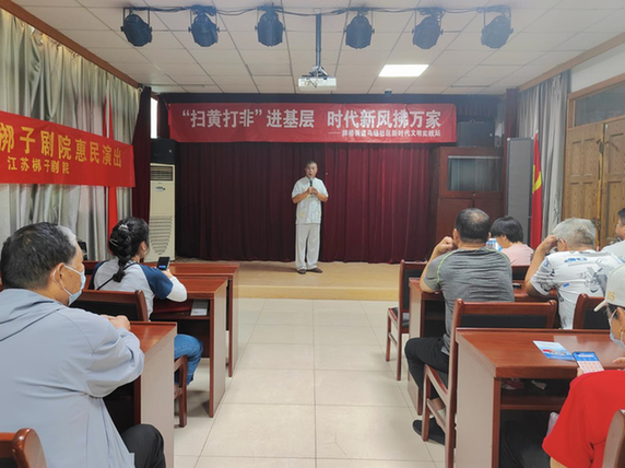 步入馬場社區新時代文明實踐站,一場以“掃黃打非進基層、時代新風拂萬家”為主題的折子戲惠民演出活動為廣大居民帶來了精彩的“視聽”盛宴?!短ь^又見》《白蛇傳》《曙光》等精彩唱段,呈現出戲劇獨特的“在現場”魅力,讓居民群眾在家門口就過足了“戲癮”。