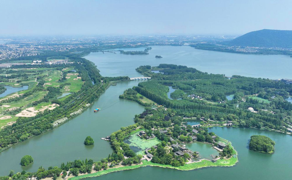 6月9日無人機拍攝的常熟尚湖風景區景色。
