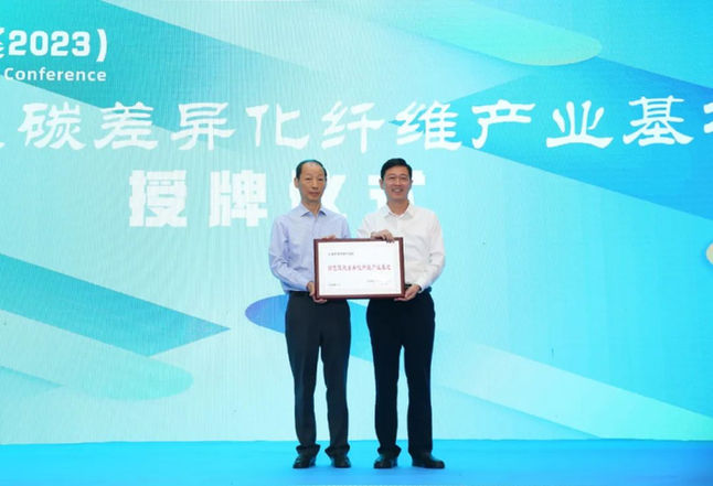開幕式上,中國化學纖維工業協會和洪澤經濟開發區簽署了戰略合作框架協議,并舉行淮安市洪澤區中國化學纖維工業協會合作共建“綠色低碳差異化纖維產業基地”授牌儀式。