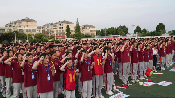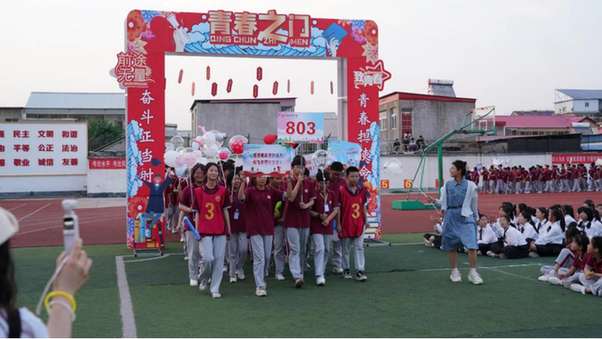 八年級各班同學在班主任的帶領下,喊著激動人心的口號,揮舞著彩旗、氣球和熒光棒莊嚴自豪的走過青春之門。