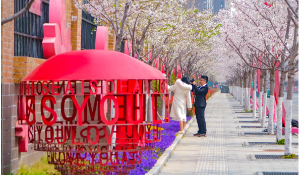 櫻花、愛情斑馬線、花瓣步道……這樣的場景會讓你想起什么?漫步于此,婚姻登記處、愛情號列車以及特色獨具的網紅打卡地標,移步換景、處處有意,彌漫著濃濃的愛情味道。