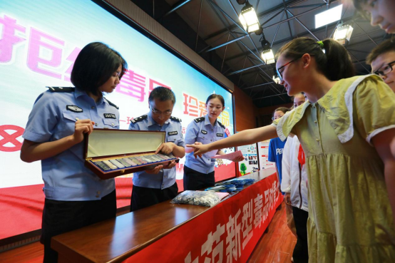 “新型毒品究竟是什么?它有多大危害?”活動現場,禁毒大隊副大隊長陳亮一邊手持毒品模型一邊認真地跟同學們講解相關知識。