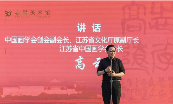 高云會長表示,叢志遠教授是一位溫潤敦厚的謙謙君子,他在藝術上追求質樸雄渾,其作品呈現出一種返樸歸真,雄健渾厚的藝術品格。感謝叢教授為中美文化的交流融合作出的積極貢獻,為江蘇省中國畫學會在美國的交流傳播給予的大力支持。相信志遠美術館的落成,不僅為如東栟茶增添了一張閃亮的文化名片和藝術地標,也為青少年打開了一扇親近藝術、了解世界的窗口。