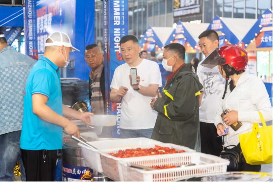 ????龍蝦攤位前站滿了等候的食客,經過精心配料、大火烹制,小龍蝦味道鮮美,香辣爽口,令人垂涎。在現場,龍蝦都是先稱重,后加湯,確保每一份都足斤足兩。