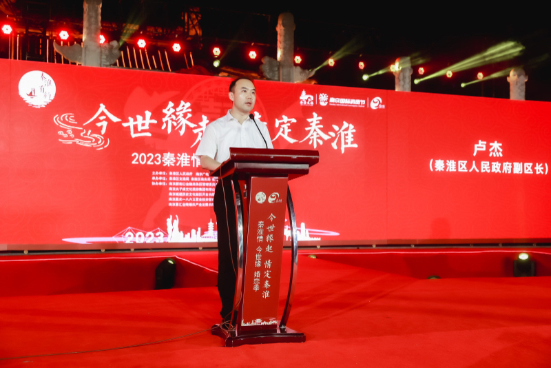 秦淮區人民政府副區長盧杰表示,秦淮是一個人文薈萃之地,一個充滿魅力之地,一個最具情懷之地?!氨敬位閼偌镜闹黝}是‘秦淮有約’,相約秦淮,我們可以在槳聲燈影里‘同舟共濟’,領略兩岸風光;能夠到故園府宅里‘金陵尋夢’,共赴沉浸話??;還能去老門東‘穿越古今’,共品典雅漢服;相約秦淮,我們還有甜蜜護航,這里吸引了100多家婚戀生態鏈企業,匯聚了最優質的產業資源,從購婚品、拍婚紗、辦婚禮到吃婚宴、住婚房、度婚假,在秦淮,大家可以一站式服務美好,一條龍護航幸福!”盧杰說。