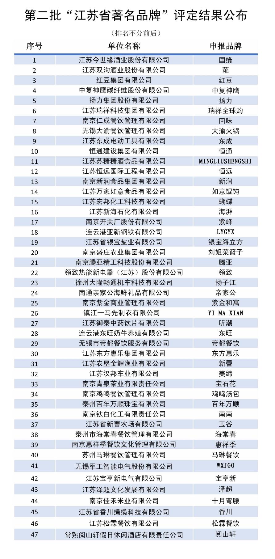 附:第二批“江蘇省著名品牌”全名單(排名不分先后)