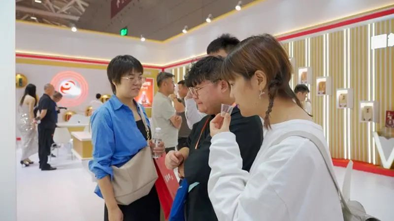 糖酒會上,今世緣酒業展位面積達135平方米,設計風格簡約大氣,以金色、紅色為主色調,“新一代醬香標準制定者”國緣V9、“中國新一代高端白酒”國緣四開、創新特色品類今世緣星球、高溝標樣等一一亮相,吸引了眾多酒水商及消費者駐足參觀、咨詢、品嘗、洽談。