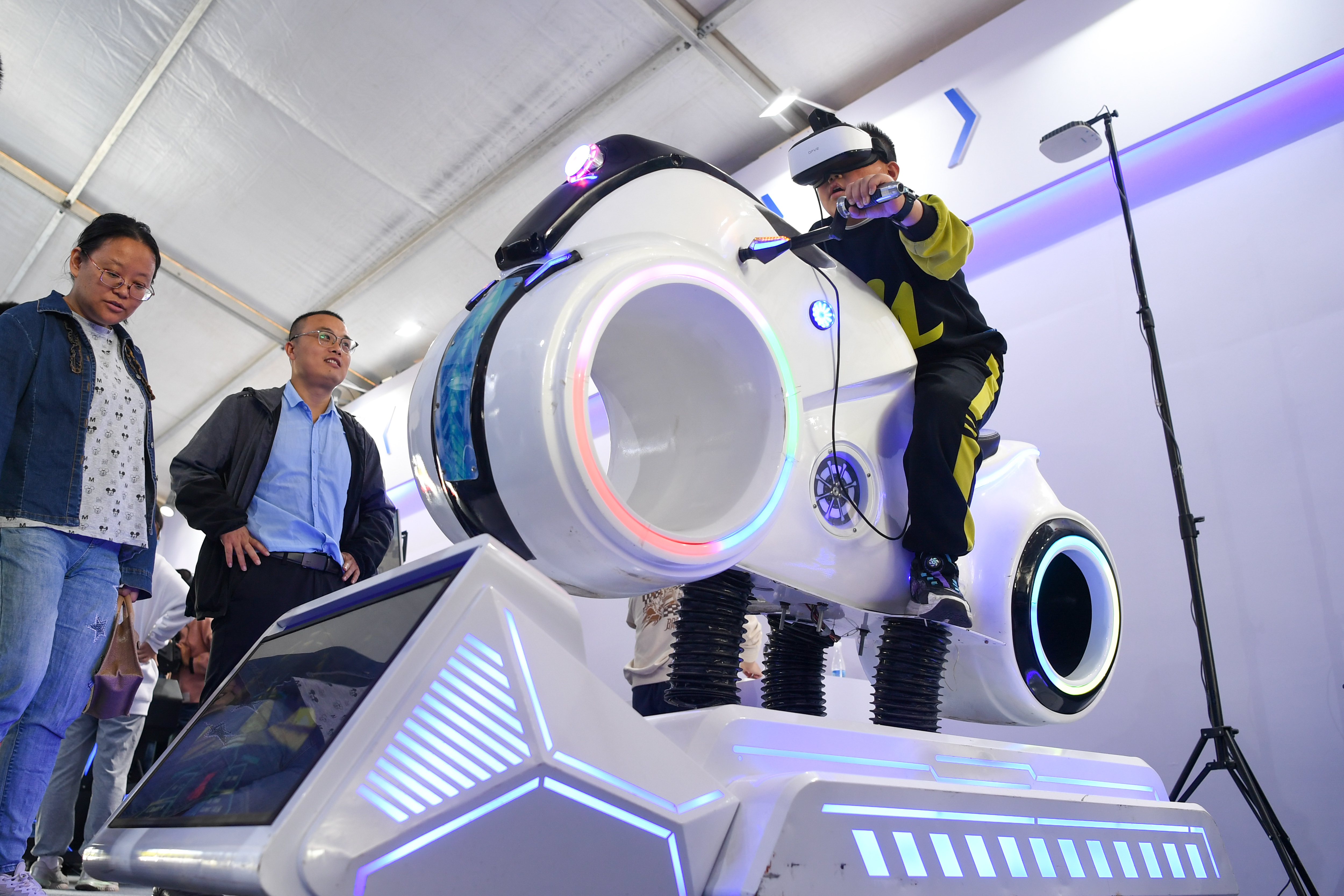 小朋友在2023世界物聯網博覽會活動現場體驗智能娛樂設備。新華社記者 李博攝