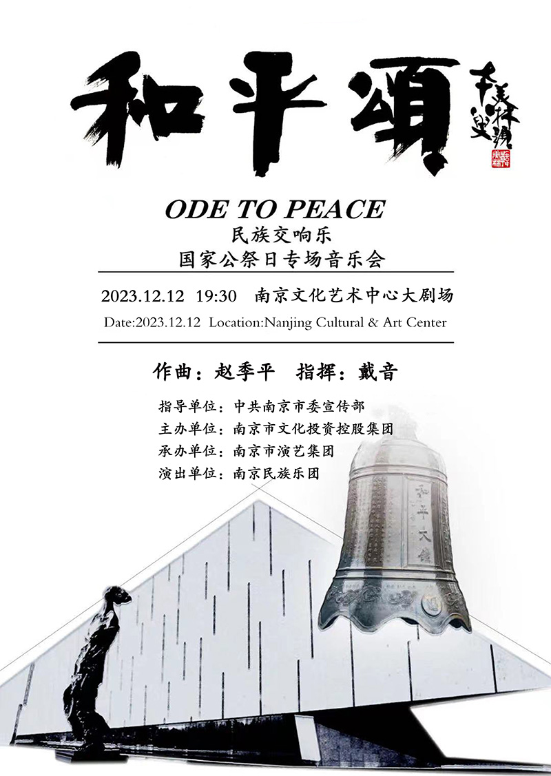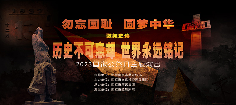 牢記歷史、不忘過去,珍愛和平、開創未來。今年是南京大屠殺慘案發生86周年,在第十個南京大屠殺死難者國家公祭日即將到來之際,由南京市委宣傳部指導、南京市文投集團主辦、南京市演藝集團承辦的“勿忘國恥、圓夢中華”2023年國家公祭日主題文藝演出將于12月5日至12日在南京市上演。